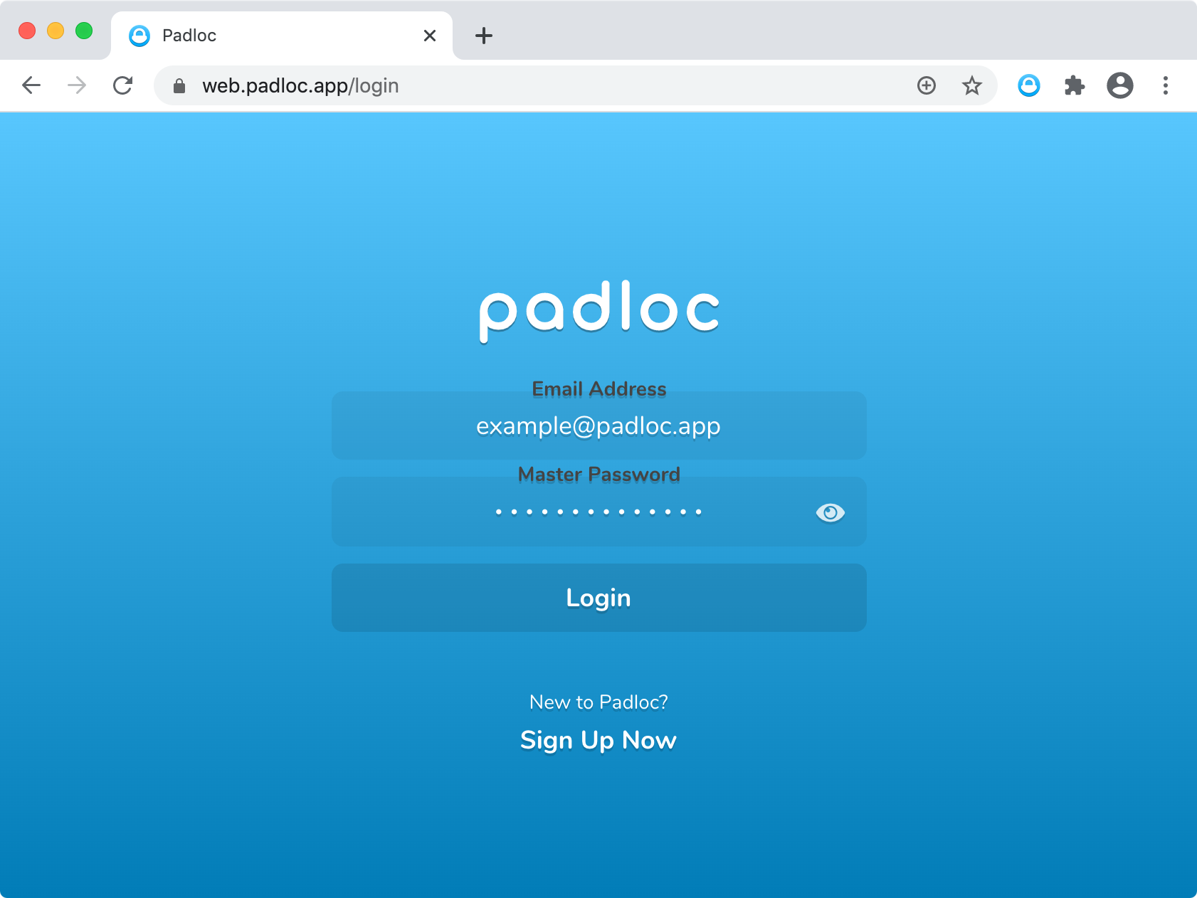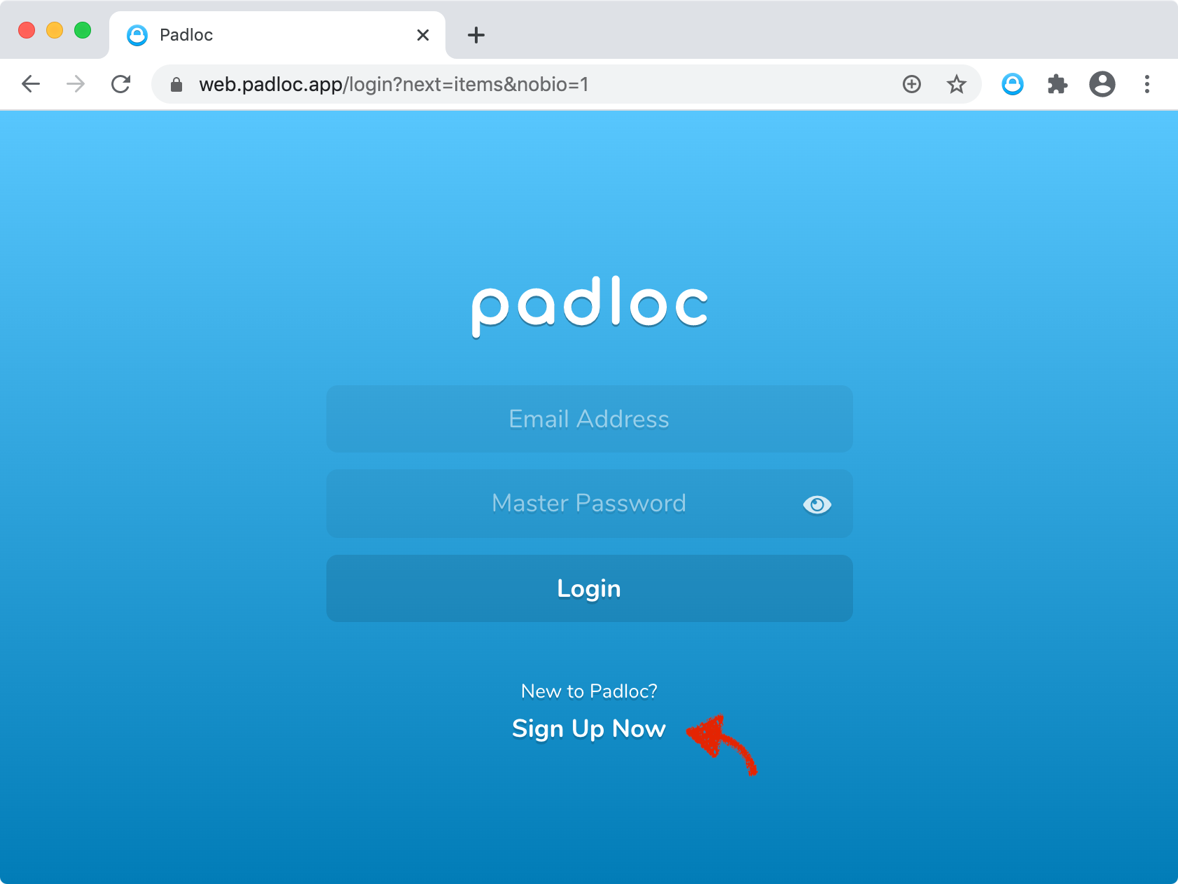 If you don’t have a Padloc 3 account yet, create one now. To do this, simply click on “Sign Up Now” and follow the instructions.