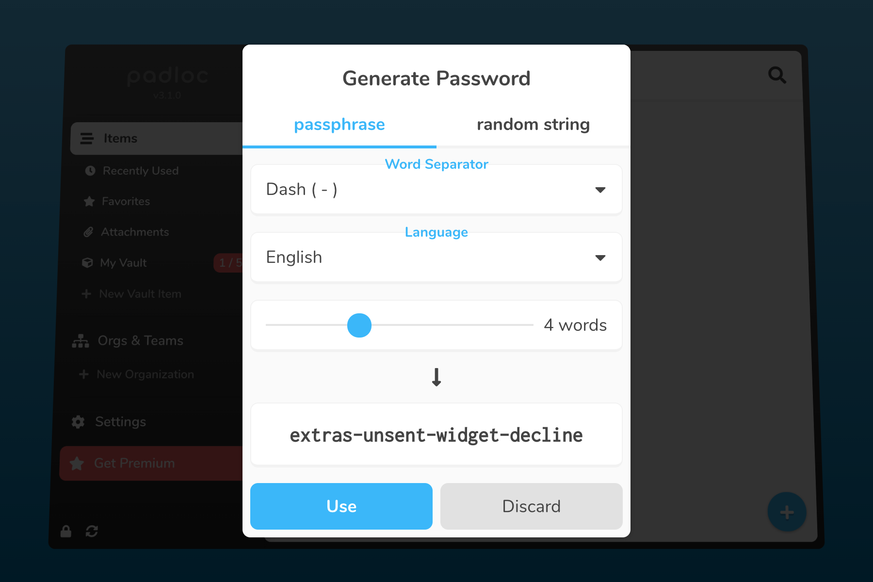 Once you’re happy with the result, click Use and the generated password will be automatically copied into the appropriate field. Or you choose Discard and leave your password as-is.