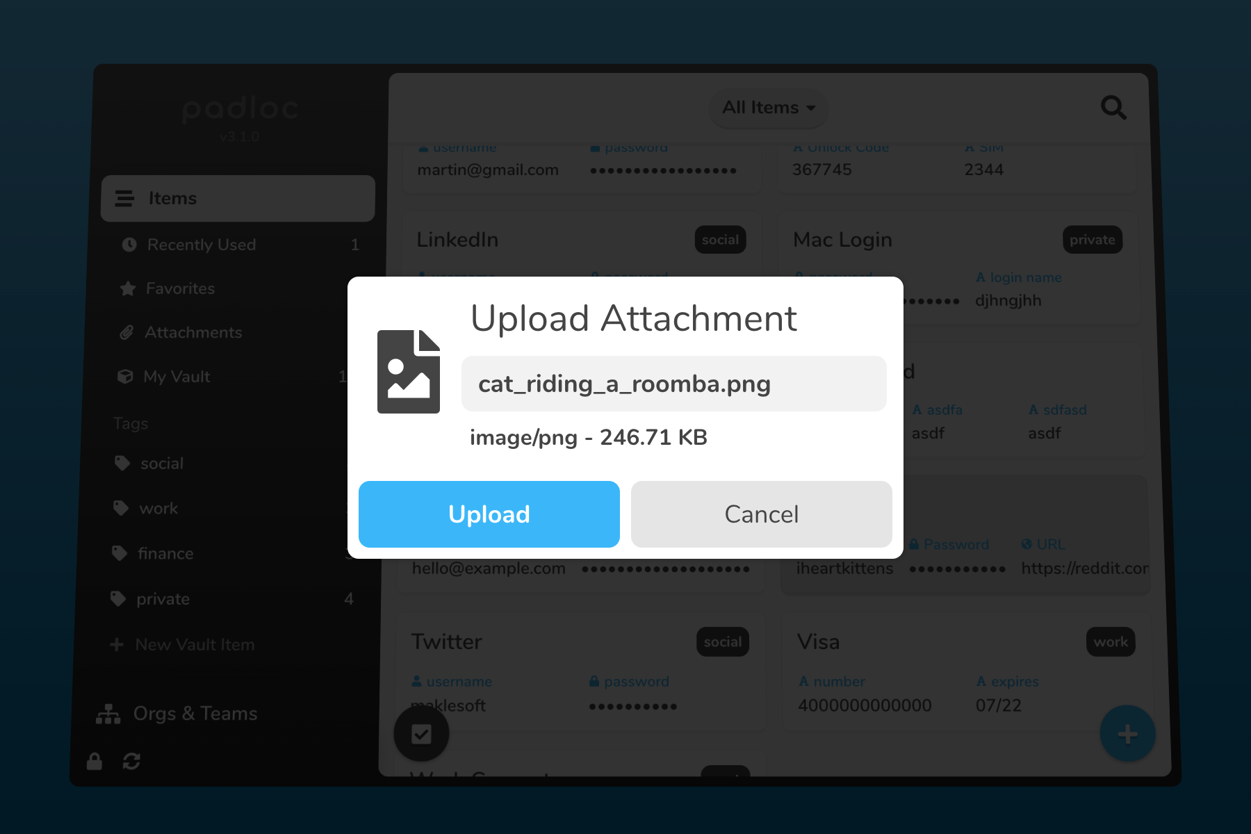 Fields allow you store all kinds of text-based information within your vault items, but sometimes that isn’t enough. After all, a lot of sensitive information is stored within pdf documents, spreadsheets, photos and all kinds of other files. Attachments allow you to securely store those documents alongside your vault items.